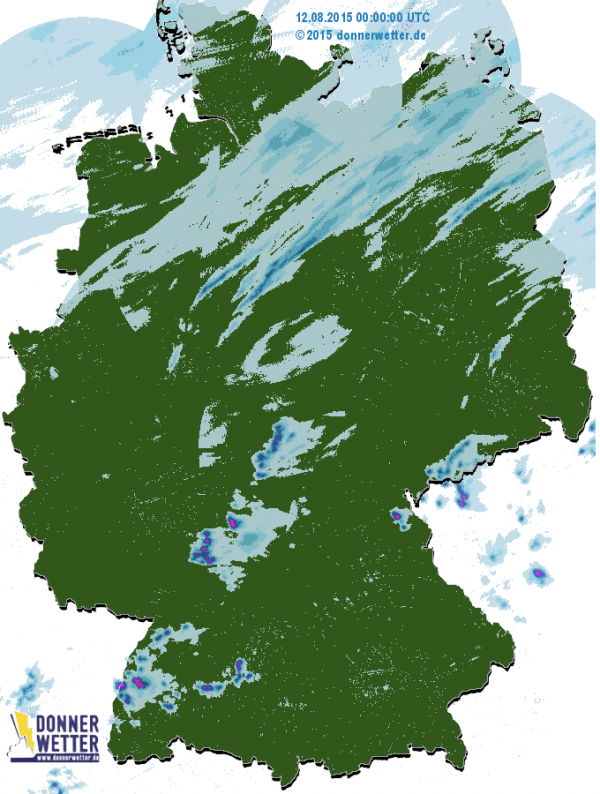 Kaum Regen gestern - im Norden ein paar Schauerstraßen im Süden wenige Gewitter
