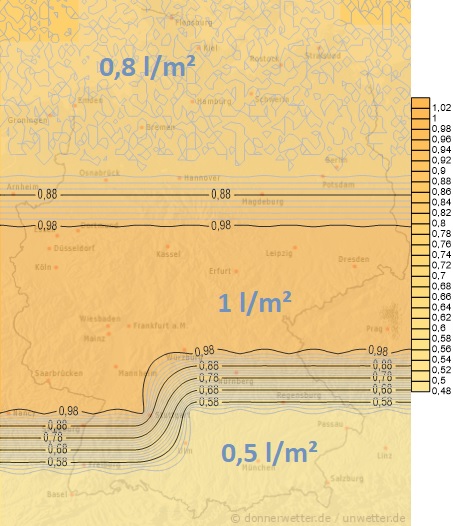 Am Wochenende und zu Beginn der neuen Woche zieht von Nordwesten immer wieder Niederschlag über Deutschland hinweg. Die Schneefallgrenze liegt in Bayern, Thüringen und Sachsen zum Teil recht niedrig, sonst etwa zwischen 500 und 800 m. Die Niederschlagsmengen bewegen sich an allen Tagen meistens so zwischen 1 und 10 Liter pro Quadratmeter. Ab Montag bleibt es im Südwesten überwiegend trocken.
