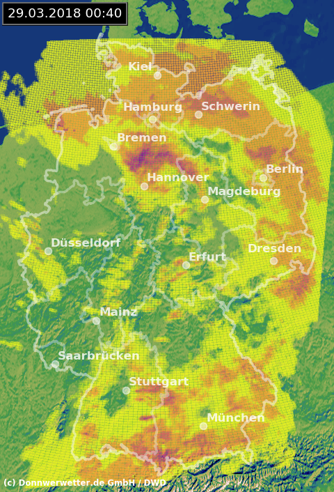 Radarbild von Gründonnerstag, 29.03.2018 um 00.40 Uhr