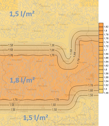 Am Samstag können in der Westhälfte, sowie an den Alpen lokale Schauer auftreten. Im Tagesverlauf ziehen von Polen und Tschechien Regenwolken in die östlichen Bundesländer, dabei sind Niederschlagsmengen allgemein zwischen 5 und 10 Liter pro Quadratmeter zu erwarten, örtlich können es aber auch mehr werden.