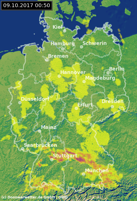 Radarbild von Montag, 09.10.2017 um 00.50 Uhr