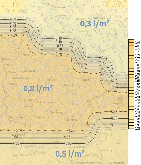 Danach geht es ziemlich durchwachsen weiter. Bei nass-kalten Temperaturen fällt teilweise Regen oder Schnee mit täglichen Mengen zwischen 5 und 20 Liter pro Quadratmeter, regional auch noch mehr, örtlich kann es auch blitzen und donnern, lediglich im Nordosten bleibt es am Mittwoch überwiegend trocken, phasenweise wird es sehr windig, am Donnerstag drohen Sturm und Orkanböen! Im Bergland können bis zum Wochenende größere Neuschneemengen fallen. Aufgepasst, die Pegel an Bächen und kleineren Flüssen können wieder spürbar anschwellen.