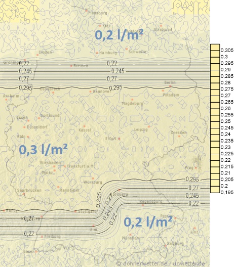 Am Donnerstag fällt teils kräftiger Niederschlag, in den Bergen meistens als Schnee. Die Mengen liegen oft zwischen 5 und 25 Liter pro Quadratmeter. Die Pegel der Flüsse schwellen daher weiter an.