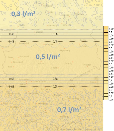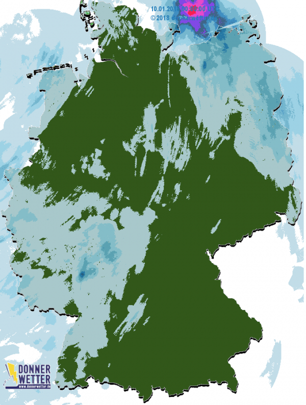 Heute wandert ein kleines Niederschlagsgebiet von Polen über den Norden Deutschlands hinweg Richtung Emsland. Teilweise können sich Schneeflocken unter die Tropfen mischen. Die Mengen liegen dabei meistens zwischen 2 und 9 Liter pro Quadratmeter. Im übrigen Land sollte es in der Regel trocken bleiben.