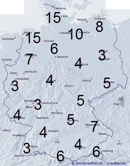 Zunächst fällt in den Mittelgebirgen und im Osten örtlich noch leichter Regen und Sprühregen, im Tagesverlauf zieht im Küstenumfeld, sowie in Schleswig-Holstein neuer Regen auf. Sonst entsteht Benetzung durch Feuchtigkeit, wie Tauansatz. Die Benetzungsdauer liegt in Deutschland allgemein zwischen 3 und 7 Stunden, ganz im Norden zwischen 7 und 15 Stunden. Bei einer noch vorhandenen Schneedecke in den Bergen werden bis zu 24 Stunden erreicht.
