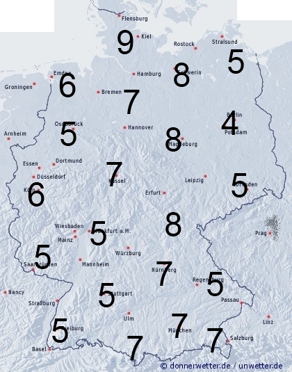 In Deutschland fällt gebietsweise Regen oder es treten Schauer auf. Sonst entsteht Benetzung durch nächtlichen Strahlungstau. Die Benetzungsdauer liegt allgemein zwischen 4 und 9 Stunden, kann aber in windgeschützten Lagen außerhalb von Ortschaften deutlich nach oben abweichen.