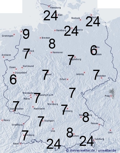 Im Norden fällt teilweise Niederschlag, anfangs noch häufig als Schnee, später bei Milderung allgemein in Regen übergehend. Sonst entsteht Benetzung durch nächtliche Taubildung. Die Benetzungsdauer liegt in Deutschland allgemein zwischen 6 und 8 Stunden, bei Niederschlägen im Norden zwischen 8 und 15 Stunden, bei einer vorhandenen Schneedecke werden bis 24 Stunden erreicht.