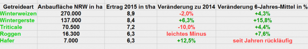 Übersicht Getreideernte NRW 2015