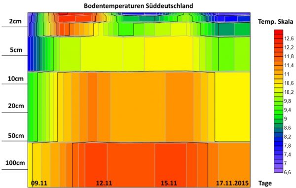 Bodentemperatruen vom 10.11.2015 bis zum 17.11.2015 für das Mittelgebirge.