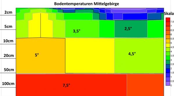 Bodentemperatruen vom 16.12.2015 bis zum 22.12.2015 für das Mittelgebirge.
