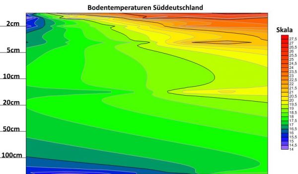 Bodentemperatruen vom 09.08.2016 bis zum 16.08.2016, für das Mittelgebirge.