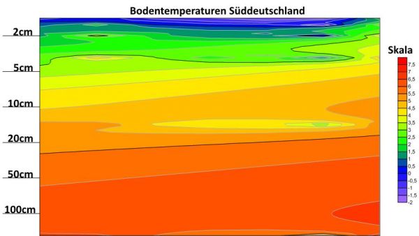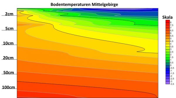 Bodentemperatruen vom 06.12.2016 bis zum 13.12.2016, für das Mittelgebirge.