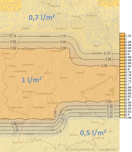 Am Mittwoch und Donnerstag muss gebietsweise mit Regen oder Schauern gerechnet werden, im Bergland, sowie im Norden kann es zunächst noch schneien. Die Niederschlagsmengen liegen dabei weiterhin zwischen 1 und 10 Liter pro Quadratmeter.