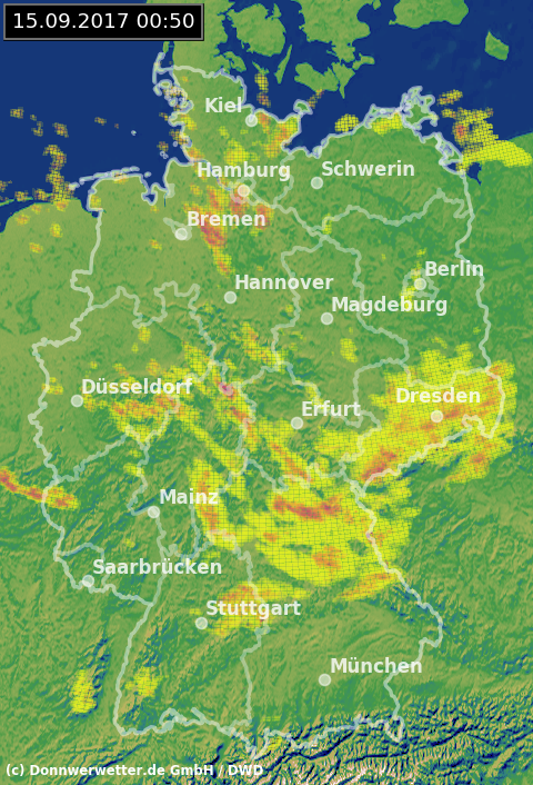 Radarbild von Freitag, 15.09.2017 um 00.50 Uhr