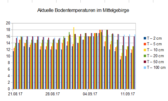 Bodentemperaturen vom 21.08.2017 bis zum 12.09.2017, für das Mittelgebirge.