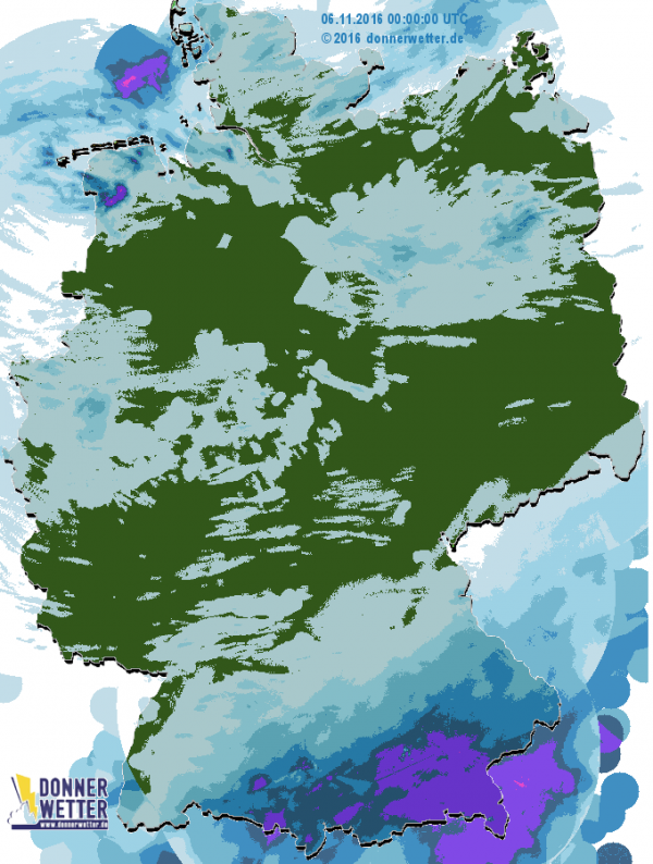 Besonders am Alpenrand hat Tief Husch bis zu 40 l/m2 an Regen hinterlassen. Nach Norden hin wurde es trockener und selten brachten Schauer nennenswerte Regenmengen.  Nur auf der offenen Nordseee war es bei 10-20 l/m2 ebenfalls nass. Heute wird es wieder Regen und Schnee ab 300-400 m Höhe geben. Das nasskalte Wetter bleibt.