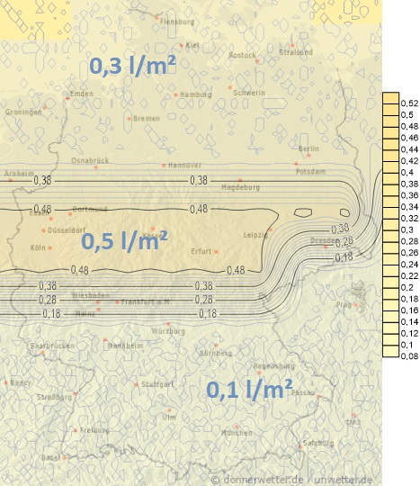Heute stellt sich eine vorübergehende Wetterberuhigung ein, bevor zum Abend im Emsland leichter Regen aufzieht, weiter landeinwärts kann es nachts auch schneien. Die Niederschlagsmengen liegen zwischen 1 und 5 Liter pro Quadratmeter.