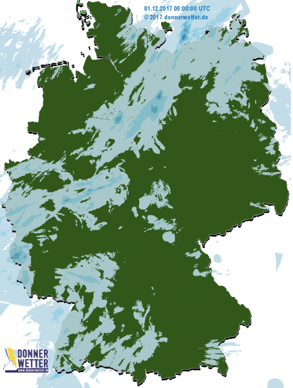 Das Radarbild zeigt aktuell nur noch wenige schwache Signale. Im östlichen NRW fällt noch etwas Schnee, rund um Berlin noch etwas Regen oder Sprühregen. Sonst ist der Himmel über Deutschland überwiegend wolkenverhangen, aber auch gebietsweise aufgeklart. Stellenweise haben sich Nebelfelder gebildet.