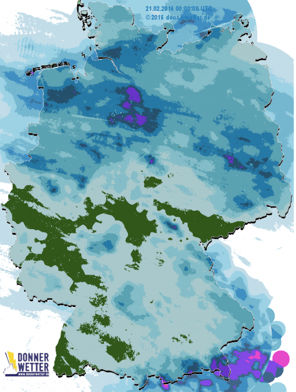 Nördlich der Mittelgebirge war es sehr nass. Auch an den Alpen war es nass. Heute zieht von Norden her ein Regenband durch Deutschland. Hurra, allen werden wieder nass.....