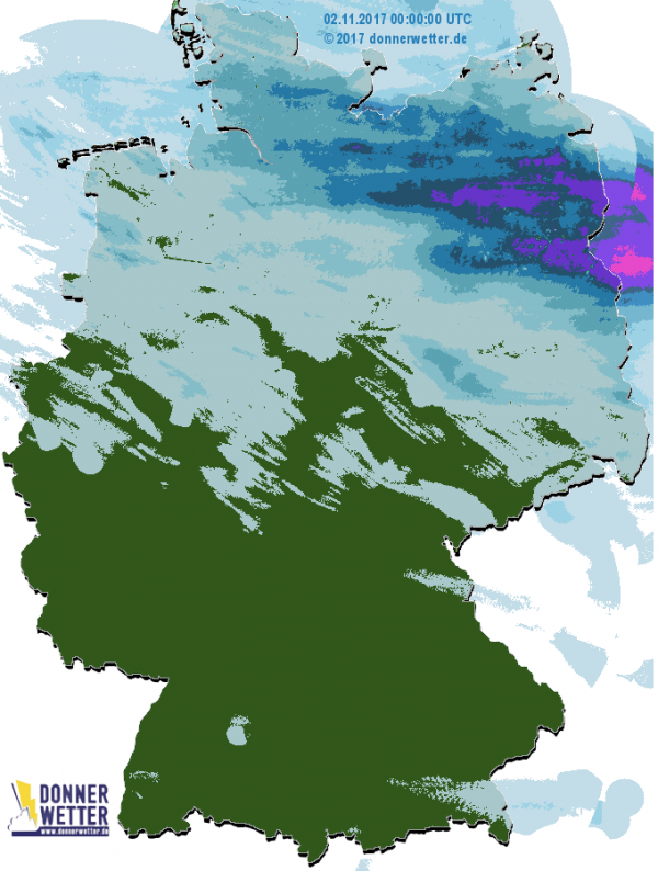 Das Radarbild zeigt aktuell vor allem im Westen und in Südbayern einige Niederschlagssignale. Sonst ist der Himmel über Deutschland überwiegend wolkenverhangen und nur gebietsweise aufgeklart. Vor allem im Nordwesten haben sich Nebelfelder gebildet. Die Temperaturen liegen aktuell zwischen 4 und 12 Grad.