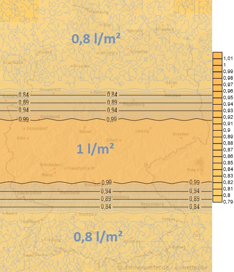 Am Sonntag überquert uns das Regengebiet allmählich von West nach Ost. Dabei kann gebietsweise zwischen 10 und 20 Liter pro Quadratmeter fallen.