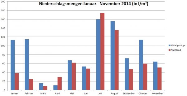 Das laufende Jahr sticht besonders mit seinen milden Temperaturen hervor, doch auch in Sachen Niederschlagsmenge zeigte sich 2014 äußerst gegensätzlich.