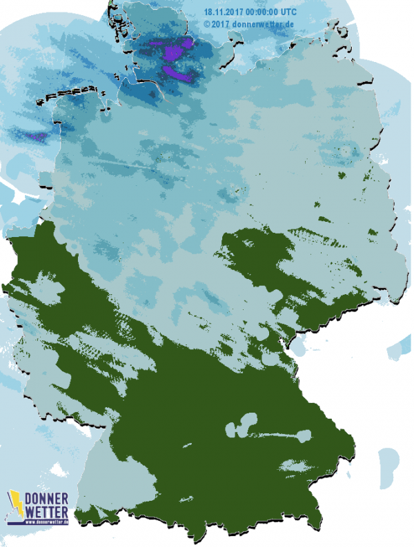 Heute fällt im Süden noch längere Zeit Niederschlag, teils als Regen, teils als Schnee. Sonst ziehen neben kurzen sonnigen Abschnitten auch einige Schauer übers Land. Im Bergland fallen die Schauer als Schnee, sonst als Regen, oder mit Graupeln vermischt. Die Niederschlagsmengen liegen aber allgemein unter 15 Liter pro Quadratmeter.
