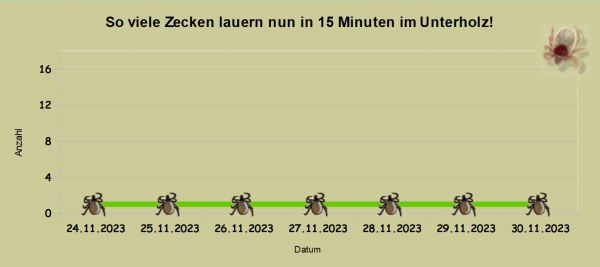 Die niedrigeren Tag- und Nachttemperaturen, sorgen nun für stillere Töne im Unterholz. Nur noch selten verirrt sich innerhalb von 15 Minuten eine Zecke aus dem sicheren Versteck.