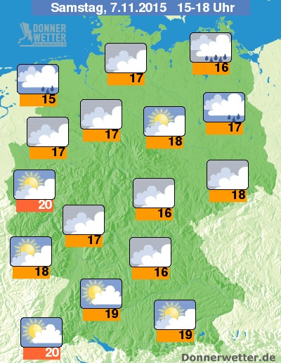 Am Nachmittag beschränken sich Regengebiete vor allem auf die Nordhälfte Deutschlands, einzelne Schauer sind zudem zwischen Franken und dem Alpenvorland zu erwarten. Die Sonne lässt sich nur selten blicken.