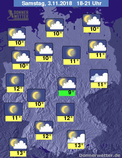 Heute Abend ist der Himmel überwiegend sternenklar, vor allem im Küstenumfeld und im Alpenvorland zieht meist lockere Bewölkung durch, dazu bleibt es trocken. Die Temperatur liegt bei 9 bis 13 Grad.