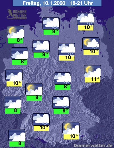Am Abend Abend fällt gebietsweise Regen. Sonst bleibt es wechselnd bis stark bewölkt. Stellenweise lockert die Wolkendecke auch mal auf.