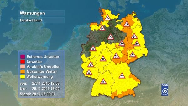 Achtung: Für die fünf östlichen Bundesländer gibt es Warnungen vor Schnee und Eis bis zum Abend. Auch Bayern und Baden-Württemberg ist glatt, oder wird bis zum Abend (Ostbayern) glatt. Hier die Warnkarte. In unserer 2-Stunden-Prognose gibt es ständige Infos.