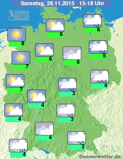 Heute Nachmittag bleibt es über der Südosthälfte von Deutschland noch weitgehend bedeckt und es fällt immer wieder Regen, nach Süden hin auch häufig Schneeregen oder Schnee mit entsprechender Glättegefahr! Im Norden und Westen ist es hingegen oft locker oder aufgelockert bewölkt, vor allem im Nordwesten auch oft sonnig und es bleibt trocken. Die Temperatur steigt auf 3 Grad in Nürnberg und bis Werte um 8 Grad an der Wesermündung. An der Nordsee weht oft stürmischer Wind.