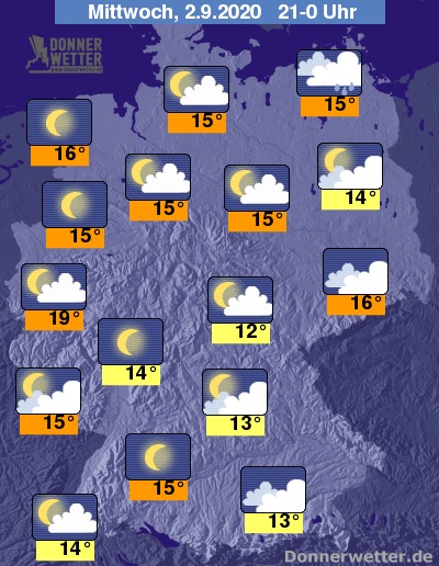 Am frühen Abend liegen die Temperaturen noch zwischen gemäßigten 18 Grad in Thüringen und angenehmen 24 Grad in den Metropolen des Westens.