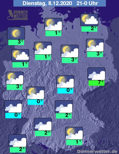 Die Temperaturen gehen bis Mitternacht auf 0 bis 7 Grad zurück, am mildesten bleibt es in Sachsen.