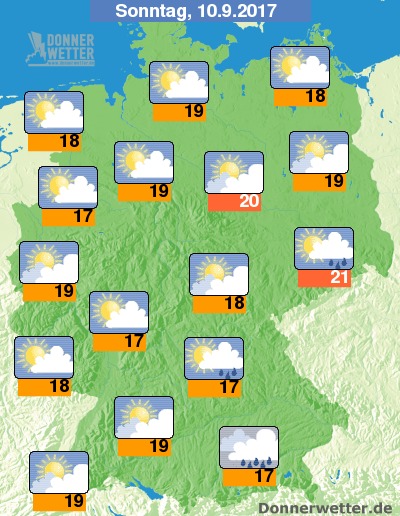 Auch die Temperaturen pendeln sich wieder ein wenig ein und erreichen im Tagesverlauf Werte um 17 Grad C im Emsland und um 21 Grad C in Dresden.