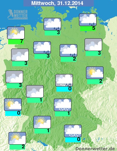 Der Mittwoch zeigt sich insgesamt wieder von seiner bewölkten Seite, denn die meisten Regionen werden wohl keine Sonne sehen. Es fällt dagegen vor allem im Norden, aber auch in der Mitte des Landes hin und wieder Regen oder Schneeregen, nach Süden hin schneit es gelegentlich, häufig ist es aber auch neblig-trüb und trocken. Die besten Chancen auf Sonne gibt es einerseits im Südwesten des Landes, gebietsweise aber auch an der Nordsee um im Erzgebirgsraum. Die Temperatur steigt auf 0 Grad in Oberbayern und bis 7 Grad in Ostfriesland.