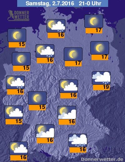 Ein wenig lassen die Schauer nach Anpfiff dann nach, im Norden klart der Himmel sogar verbreitet auf. Mit Schauern muss meist nur noch entlang der Weser, im Rheinland sowie im Erzgebirge und am Alpenrand gerechnet werden.