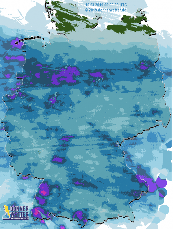 Heute zieht wechselnde, meist jedoch starke Bewölkung durch, dabei entwickeln sich zeitweise Schnee-, Schneeregen- oder Graupelschauer, örtlich sind auch kurze Gewitter möglich. Die Temperatur steigt nur noch auf 4 Grad am Pfälzer Wald und bis 7 Grad im Rheinland. Es weht ein teils stürmischer Wind, an den Küsten herrscht zum Teil Sturm.