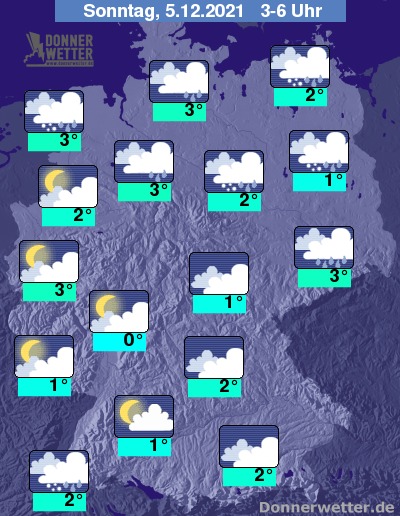 In der Nacht auf Sonntag beschränken sich Regen-, Schneeregen- und Schneeschauer vor allem noch auf den Norden und Osten des Landes. Im Westen und Südwesten Deutschlands lockern die Wolken im Nachtverlauf zunehmen auf.