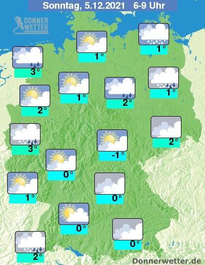 Der Sonntag startet mit einer teils geschlossenen Wolkendecke, vor allem in der Westhälfte aber auch häufiger aufgelockerter Bewölkung. Vor allem im Norosten, an der Nordseeküste sowie im Schwarzwald können in den Frühstunden einzelne Schneeregen-, Regen- oder Schneeschauer fallen, sonst bleibt es meist trocken.