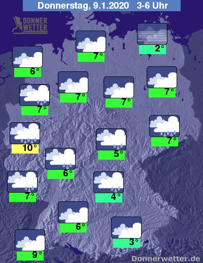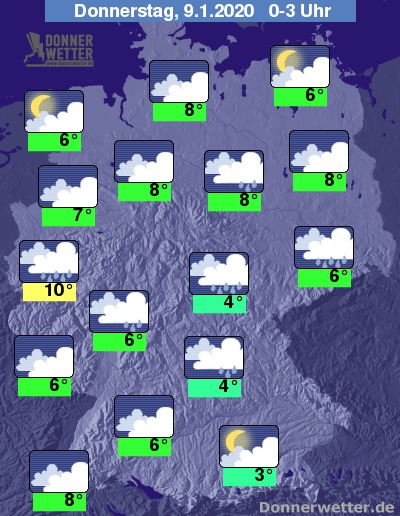 In der Nacht auf Donnerstag zeigt sich der Himmel verbreitet dicht bewölkt oder bedeckt, regionale Auflockerungen beschränken sich in der ersten Nachthälfte auf die Küstengebiete sowie den Alpenrand. Vor allem im Westen und der Landesmitte fällt in den nächsten Stunden immer wieder Regen, im Norden und Süden bleibt es häufig trocken.
