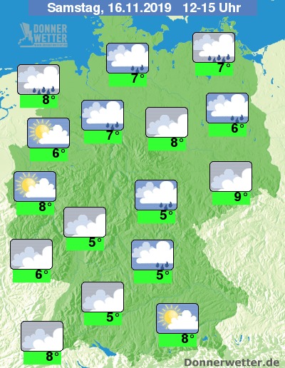 Heute Nachmittag fällt bevorzugt über dem Norden Deutschlands bei dichten Wolken zeitweise Regen, sonst ist es auch oft stark, teils aber auch aufgelockert bewölkt und es bleibt meist trocken. Die Temperatur liegt bei 5 Grad in Oberfranken und bis 9 Grad in Dresden.