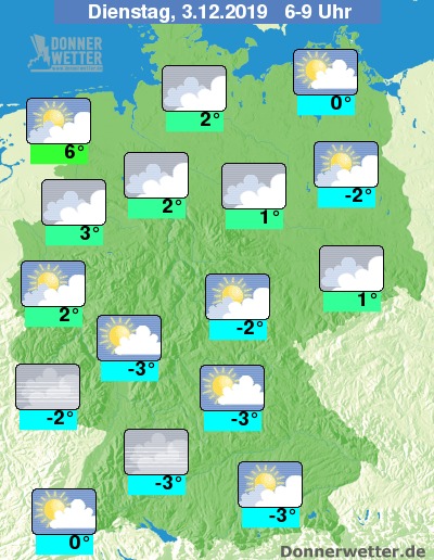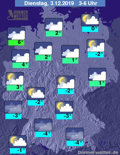Die Temperaturen liegen in den Frühstunden bei Werten um -3 bis 6 Grad.