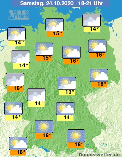 In der Nacht zum Sonntag ist der Himmel im Süden meist sternenklar, im Osten locker bis aufgelockert bewölkt und im Norden und Westen anfangs noch oft aufgelockert, jedoch zunehmend stark bewölkt. Gegen Morgen ist westlich von Niederrhein und Ems auch Regen möglich, sonst bleibt es trocken. Die Temperatur sinkt auf 14 Grad in Emden und bis 7 Grad im Raum München.