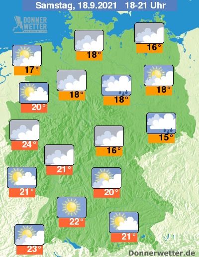 Heute Abend sind im Osten noch letzte Schauer möglich, sonst bleibt es hier und im Norden noch verbreitet stark bewölkt, Auflockerungen sind jedoch möglich. Im übrigen Bundesgebiet ist es gebietsweise stark, zumeist jedoch nur locker bewölkt oder sogar sonnig. Die Temperatur liegt bei 15 Grad in der Lausitz und bis 24 Grad im Rheinland.