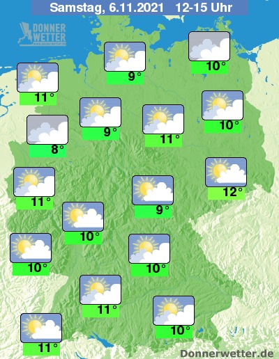 Heute Nachmittag zeigt sich die Südhälfte des Landes häufig heiter bis sonnig, sonst ist es aber meist stark bewölkt oder trüb, hier und da können sich aber auch Auflockerungen zeigen. An den Küsten sind einzelne Schauer möglich, sonst bleibt es trocken. Die Temperatur liegt bei 8 Grad im Münsterland und bis 12 Grad in der Lausitz.