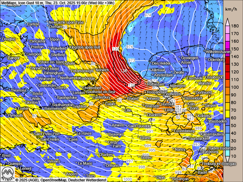 Hier die aktuellen Sturmkarten zur Bombenzyklonentwicklung im Kanal.