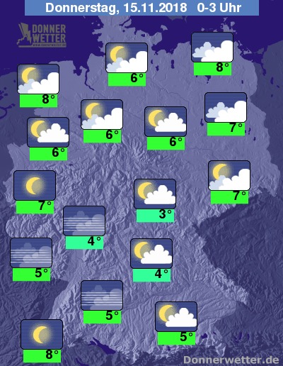In der Nacht ist der Himmel in der Nord- und Osthälfte sowie in der Mitte teils locker oder aufgelockert bewölkt, teils bedeckt. Schauer sind aber nicht zu erwarten. In der Südwesthälfte und entlang der Donau zeigen sich häufig die Sterne, lokal kann sich aber auch Nebel bilden.