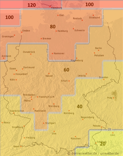 Teils starke Sturmböen in der Nordhälfte möglich.
